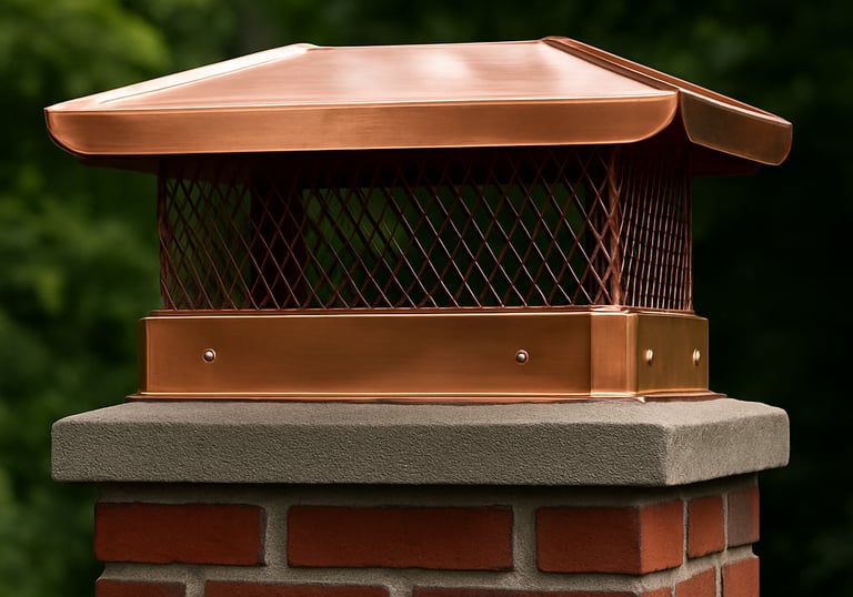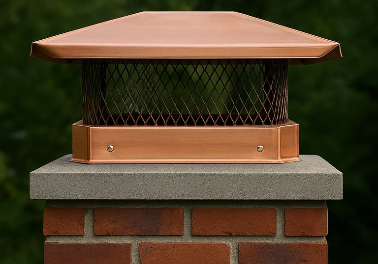 We supply and install caps made from: Stainless steel, Copper and Custom-fabricated designs. All caps come with manufacturer warranties and are installed according to industry best practices.